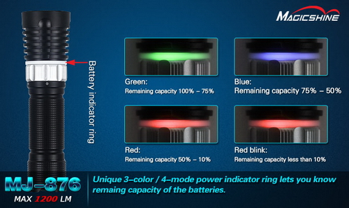 В модели MJ-876 MagicShine впервые применили полноценный индикатор уровня заряда батареи.