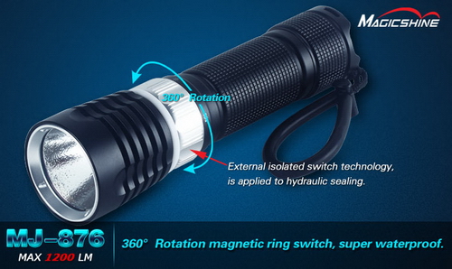В начале января в магазине Запас Мощности появилась в продаже новая модель фонаря для дайвинга от компании MagicShine MJ-876. Фонарь MJ-876, как и его младший брат MJ-850, построен на светодиоде SST-50 компании Luminus. Таким образом, по яркости фонари схожи.