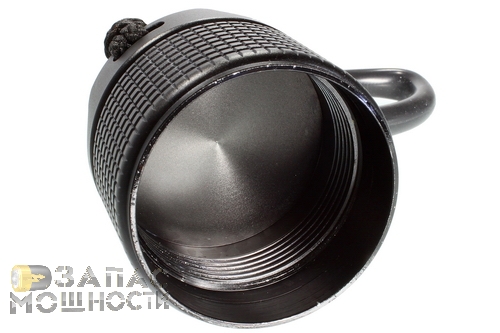 Фонарь не легкий. Весит он ровно в два раза больше чем 850я модель. На воздухе, длительное использование 1,2-килограмового изделия, наверное, удобным назвать сложно. Хотя, несмотря на это, габариты корпуса фонаря MJ-876 и его развесовка такова, что в руке он лежит очень комфортно. Рифление на корпусе позволяет надежно зафиксировать фонарь и он не стремится выскользнуть. Темляк на запястье стандартный- такой же и в фонарях моделей 810/850. Пренебрегать им не стоит,- хоть производитель и заявляет безопасное падение с высоты до 1,5 метров, мы это не проверяли и вам не советуем.