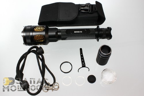 Фонарь SkilHunt Defier X3, ка и все остальные фонари линейки Defier поставляются в симпатичном жестком пластиковом кейсе. Все элементы, включая сам фонарь, уложены в толстый паралон с индивидуальными выштамповками.
