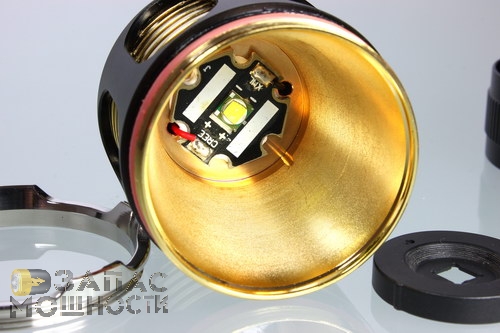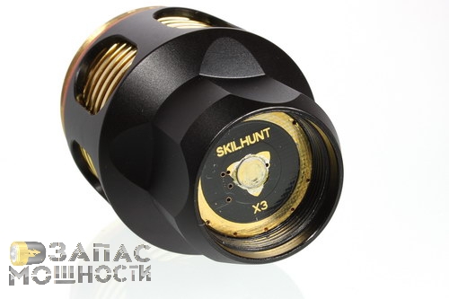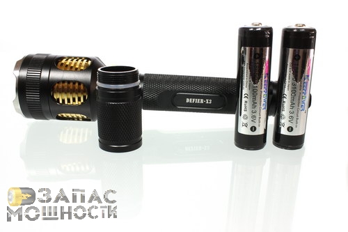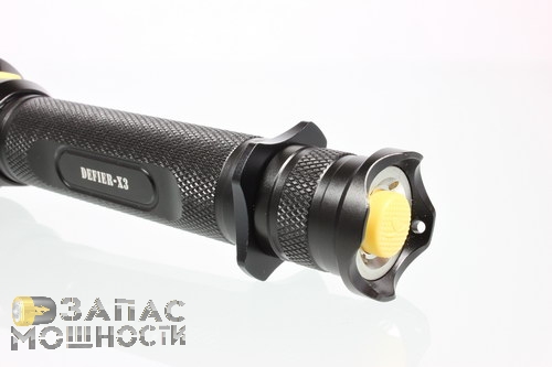 Теплоотвод от светодиода осуществляется посредством массивной латунной гильзы, полированные ребра которой так эффектно просматриваются сквозь вырезы в корпусе Defier X3.