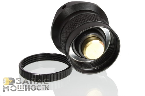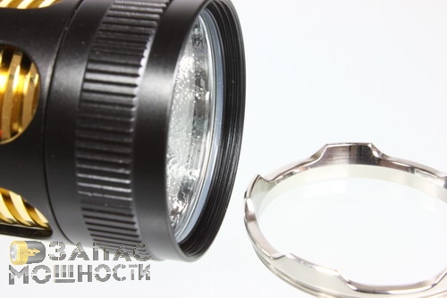 Чтобы разобрать голову фонаря необходимо открутить кольцо, которое представляет внешнюю половину всего изголовья. Для этого потребуется очень значительное усилие. Честно говоря, у нас возникло сомнение в разборности данного элемента,- настолько сильно была затянута резьба.
