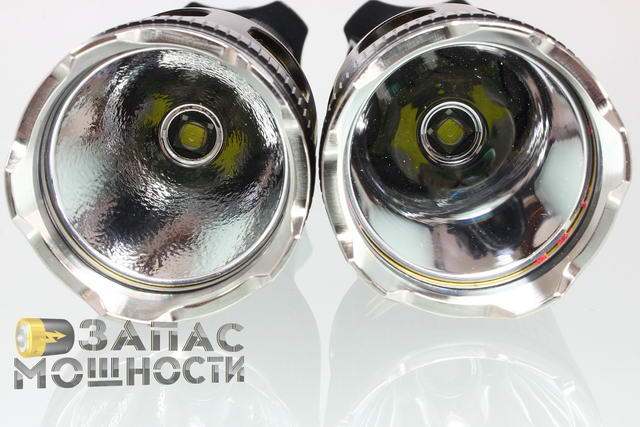 Такой отражатель совмещает в себе все преимущества обоих типов рефлекторов: дальнобойность гладкого и ровное световое пятно текстурированного. Но, по нашей просьбе, производитель предоставил нам как текстурированные рефлекторы для универсального применения фонаря так и популярные гладкие рефлекторы для обеспечения максимальной фокусировки и, соответственно, дальнобойности.