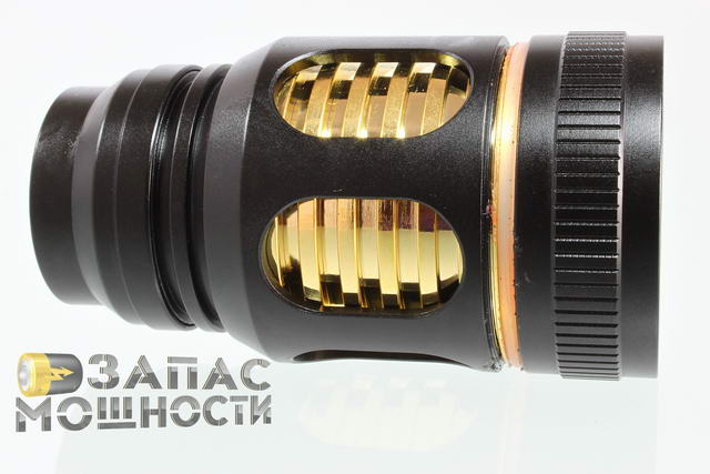 Овальные вырезы в алюминиевом корпусе изголовья, сквозь которые эффектно просматриваются полированные ребра теплоотвода, сразу обращают на себя внимание. Но такой дизайн нельзя назвать уникальным. На фото ниже мы видим, что фонарь NiteCore's RaidFire Spear имеет аналогичные вырезы, пусть и не столь эффектные.