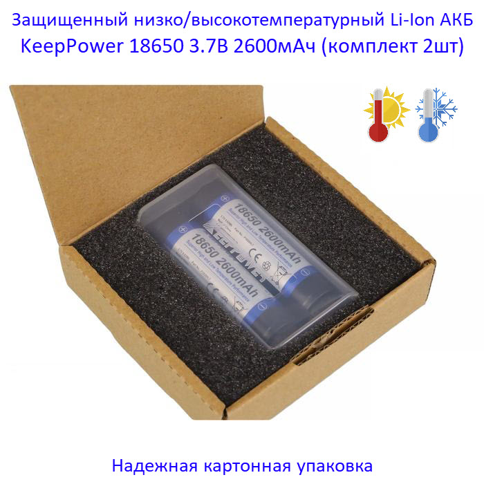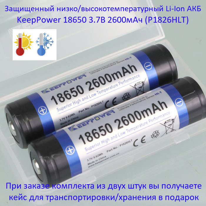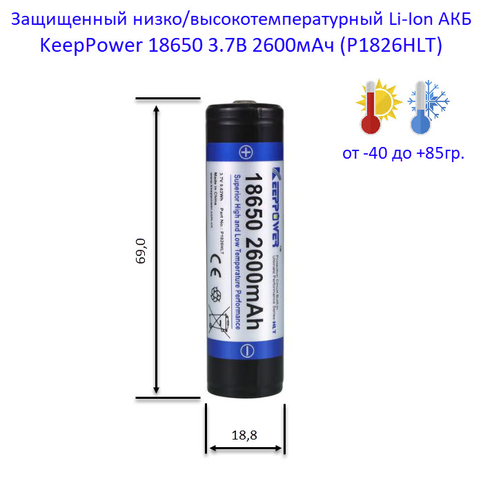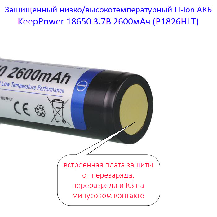Купить оригинальные 18650 2600мАч KeepPower (P1826HLT) 3,7В Защищенный низко/высокотемпературный Li-Ion аккумулятор купить в магазине Запас Мощности