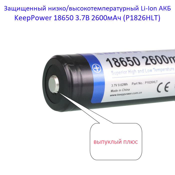 Купить оригинальные 18650 2600мАч KeepPower (P1826HLT) 3,7В Защищенный низко/высокотемпературный Li-Ion аккумулятор по лучшей цене с доставкой - интернет магазин Запас Мощности.