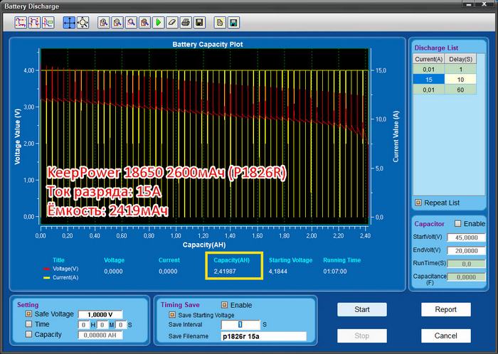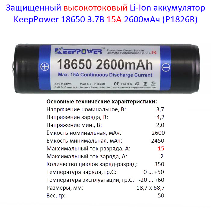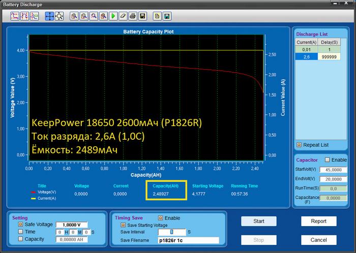 Тестирование Li-Ion аккумулятора KeepPower 18650 3,6В 2600mAh (P1826R)
