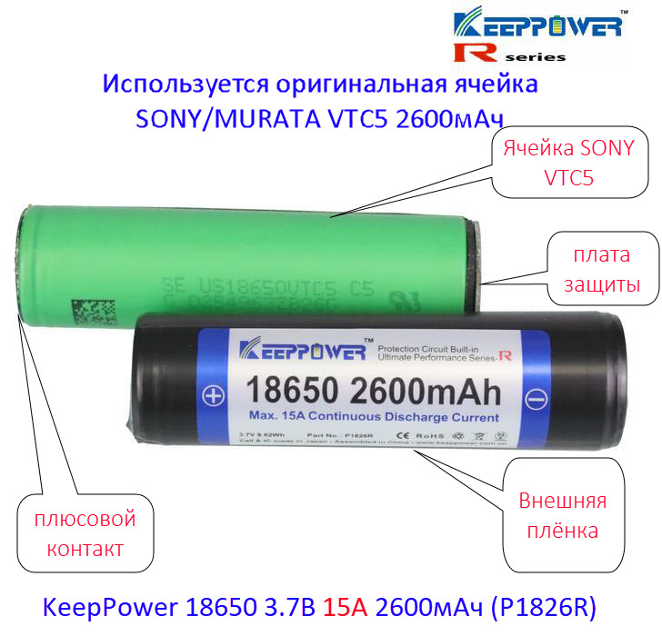 В отличии от незащищенных Li-ion аккумуляторов в защищенном Li-ion аккумуляторе установлена специальная плата защиты (на минусовом контакте), которая предохраняет аккумулятор от перезаряда, переразряда и перегрузки (короткого замыкания). Такой аккумулятор можно разряжать без опасения, что напряжение на Li-ion ячейке выйдет за рамки положенного. Встроенная плата защиты отключит аккумулятор в нужный момент. Подробнее вы можете почитать в нашей статье, посвященной основным вопросам по Li-Ion аккумуляторам.