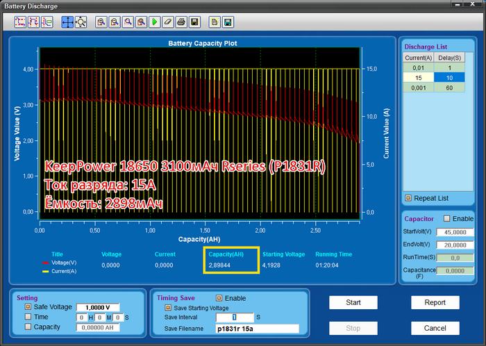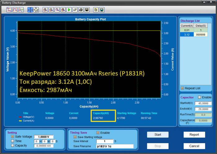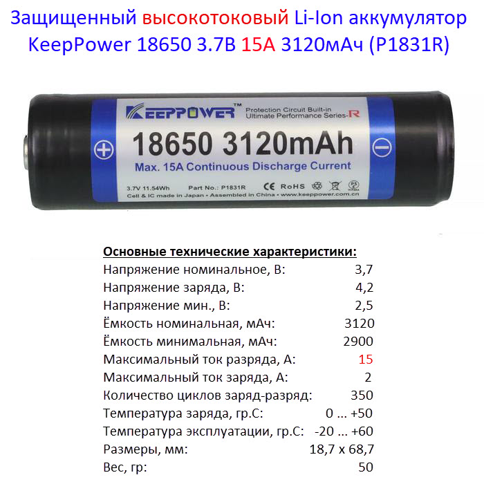Тестирование Li-Ion аккумулятора KeepPower 18650 3,6В 3100mAh (P1831R)