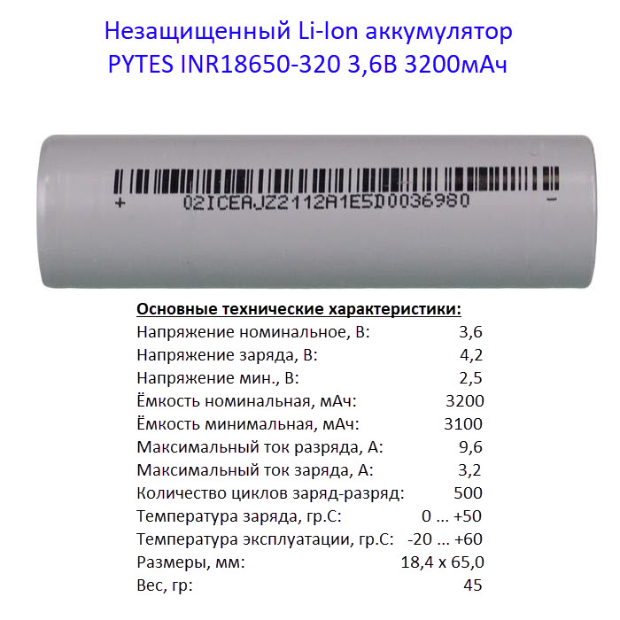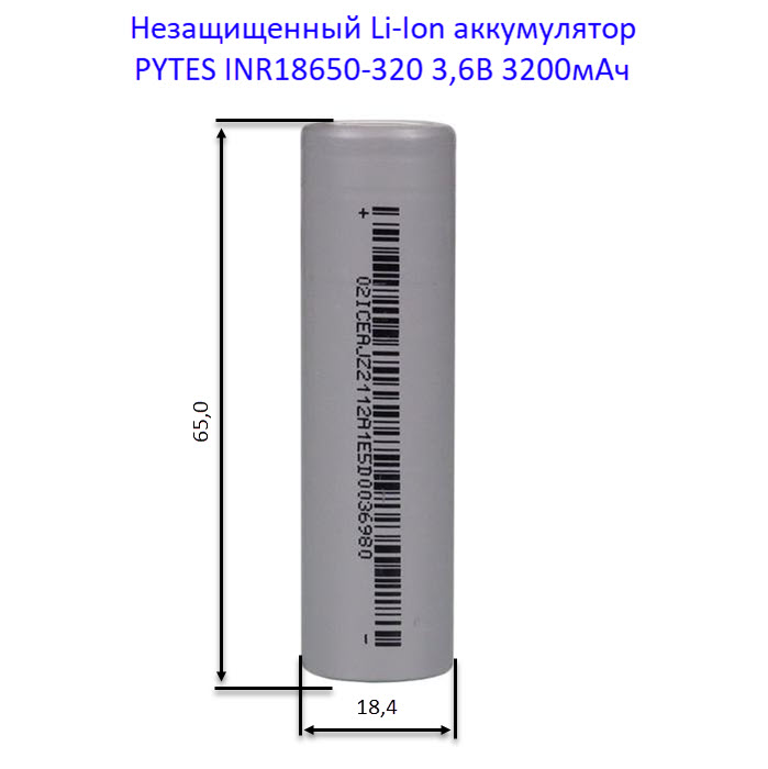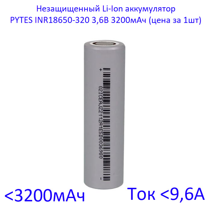 Купить оригинальные 18650 3200мАч PYTES INR18650-320 3,6В незащищенный Li-Ion аккумулятор по лучшей цене с доставкой - интернет магазин Запас Мощности.