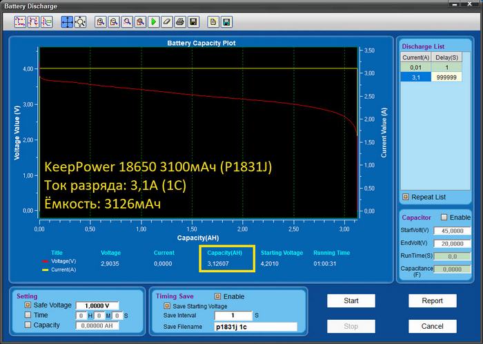 Тестирование Li-Ion аккумулятора KeepPower 3200мАч 3,7В P1832J
