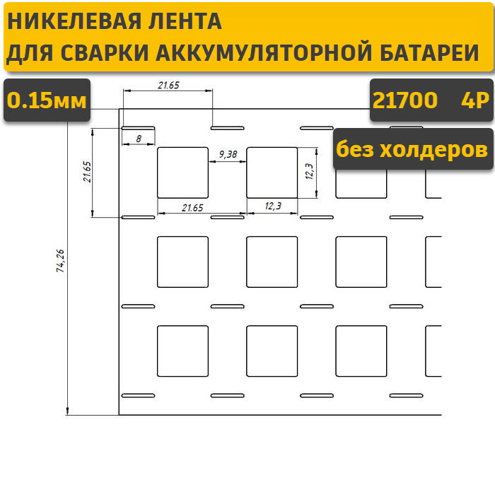 Купить оригинальные 21,6х4P-H-0,15 Лента сварочная никелевая преформованная для 21700 без холдеров (1м) по лучшей цене с доставкой - интернет магазин Запас Мощности.