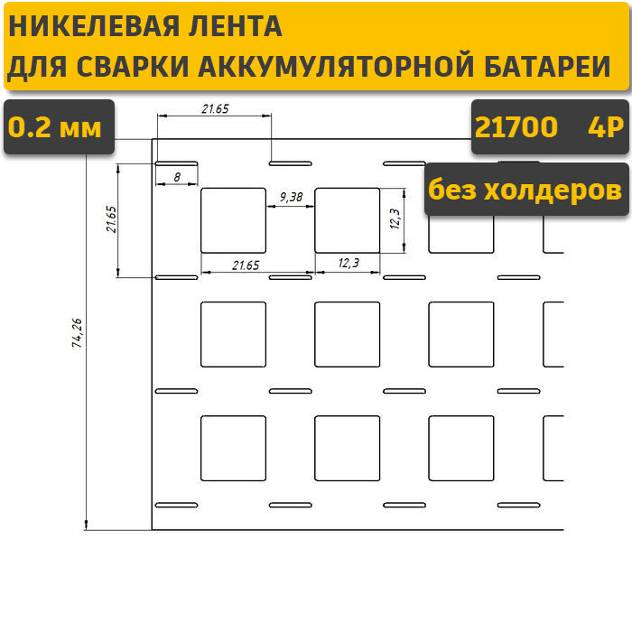 Купить оригинальные 21,6х4P-H-0,2 Лента сварочная никелевая преформованная для 21700 без холдеров (1м) по лучшей цене с доставкой - интернет магазин Запас Мощности.