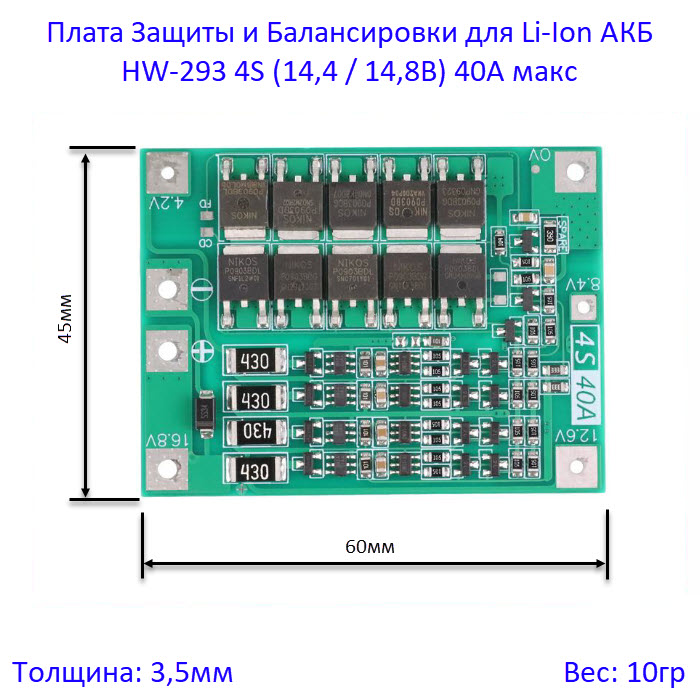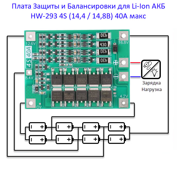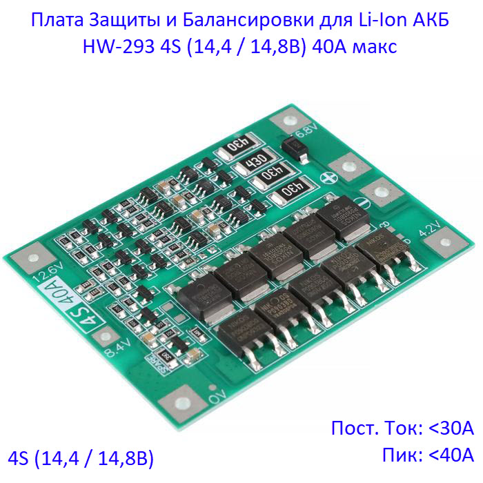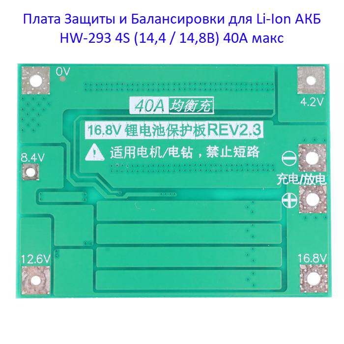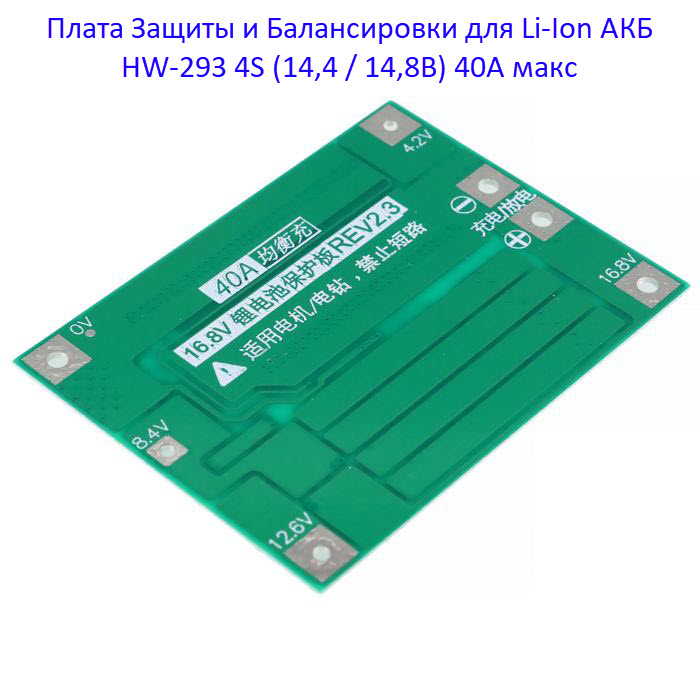 Купить оригинальные Контроллер заряда-разряда (PCM) для Li-Ion батареи 14,8 40A с балансиром HW-293 по лучшей цене с доставкой - интернет магазин Запас Мощности.