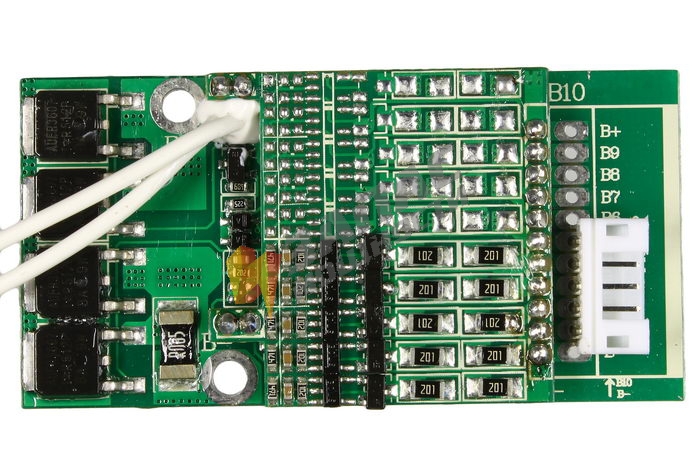 Содержит встроенную функцию балансира: плата защиты выровняет напряжения на каждой из ячеек в батарее. Для обеспечения выравнивания оставьте батарею подключенной к зарядному устройству (источник питания напряжением 21В) на несколько часов после окончания процесса заряда (когда напряжение на ячейках достигнет значения в 4,2В). В связи с тем, что ток балансировки достаточно мал, качество балансировки напрямую зависит от времени, на которое батарея останется подключенной к зарядному устройству.
