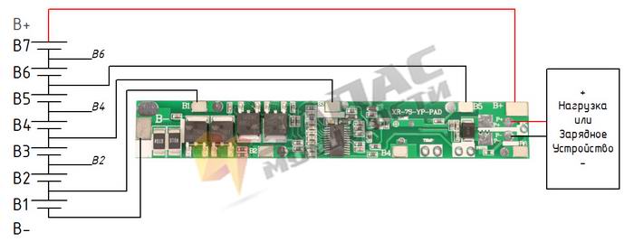 Симметричная плата защиты (PCM) для Li-ion батарей с номинальным напряжением 25,9В (7S)