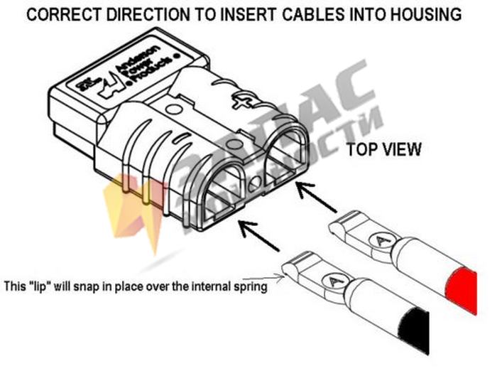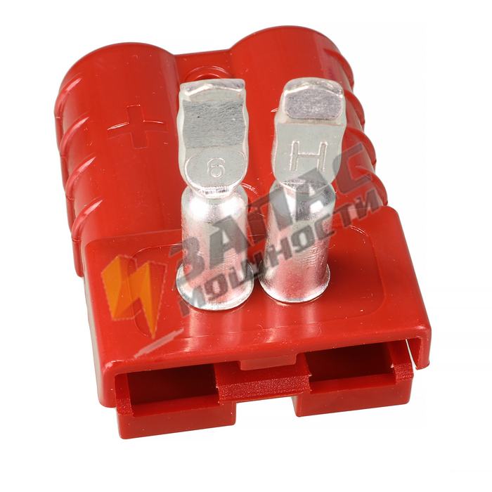 Разъем Андерсона SB 50A красного цвета. Двухполюсный разъем, рассчитанный на постоянный ток до 50A, имеет цельный пластиковый корпус с использованием пружин из нержавеющей стали для удержания контактов, комплектуется двумя контактами рассчитанные на провода сечением до 16 мм² (до 6AWG).