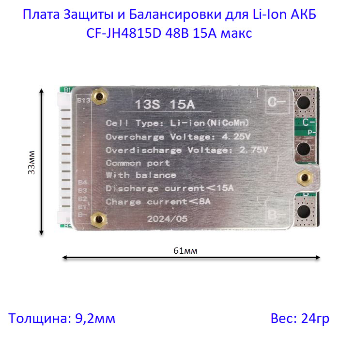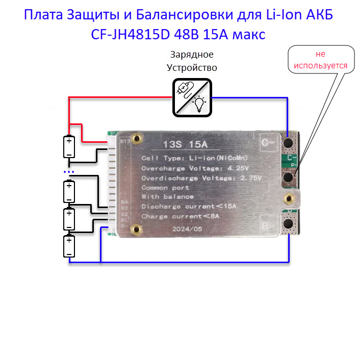Купить оригинальные Контроллер заряда-разряда (PCM) для Li-Ion батареи 48,1В 15А CF-JH4815D бал/симм. по лучшей цене с доставкой - интернет магазин Запас Мощности.